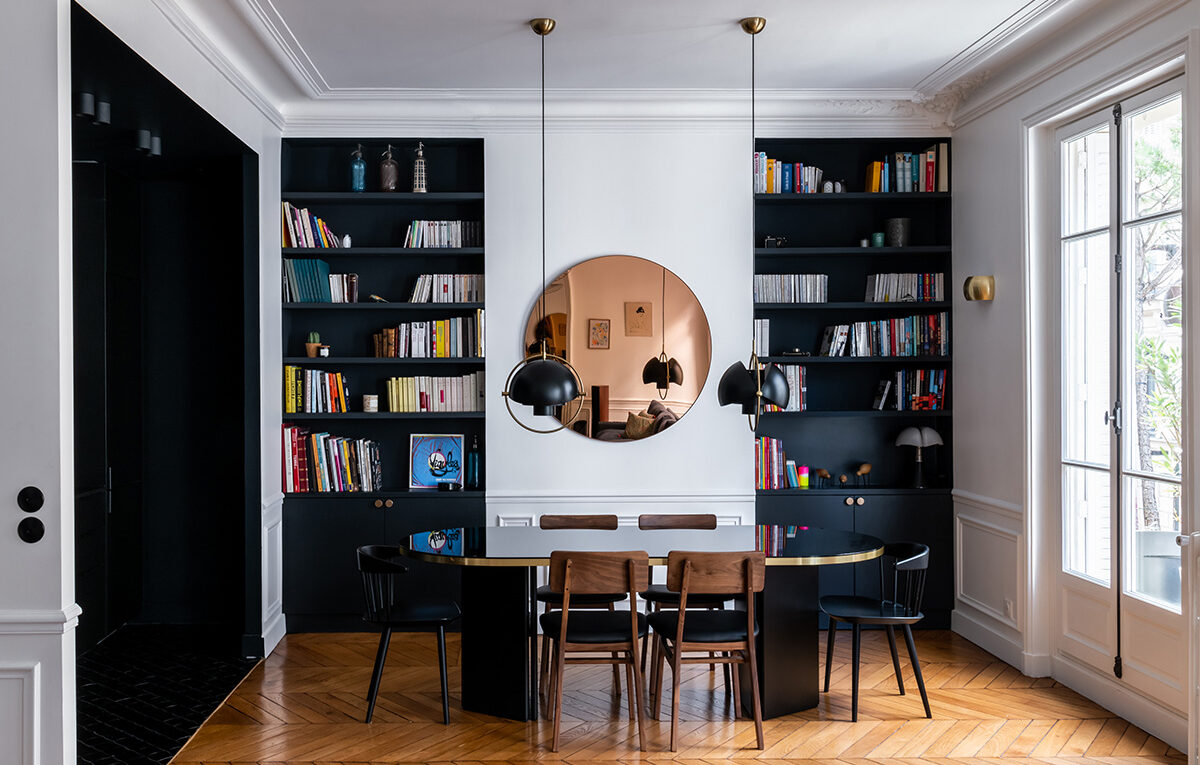 Читать далееЧерный цвет не часто можно встретить в оформлении элегантных парижских интерьеров, в этой квартире в 10 районе города с помощью
