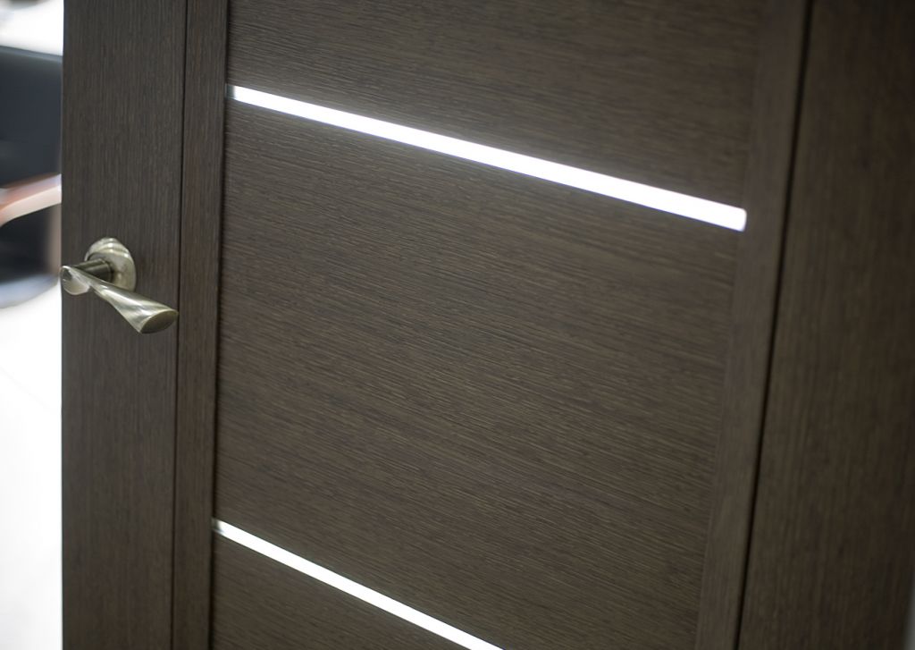 В эту линейку входят высококачественные двери из натурального шпона, имеющие вес в 40 кг. Они представлены в двух цветах: «Кофе» и «Бразильская груша». Стекло матовое, направление открывания двери можно выбирать.