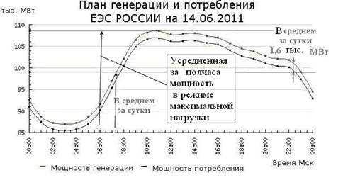 Количество потребляемой электроэнергии очень сильно отличается в зависимости от времени суток. Самый пиковый промежуток времени в промежуток времени от 17 до 23 часов. В это время люди приходят домой с работы и начинают активно пользоваться бытовой техникой. Второй пик — утренний — с 7 до 10 часов . Это время, когда все проснулись, собираются на работу и учебу. В дневное время потребление немного падает (по сравнению с утренним), но остается на достаточно высоком уровне. Меньше всего электроэнергии потребляется в ночные часы — с 23 до 7 утра.