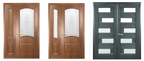 Межкомнатные 2-х створчатые двери могут быть как сплошными, так и со стеклянными вставками. Можно найти створки полностью стеклянные, может быть цельное стекло с обрамлением. В моделях с разными по размерам створками, меньшая может быть со стеклом или без (глухая).