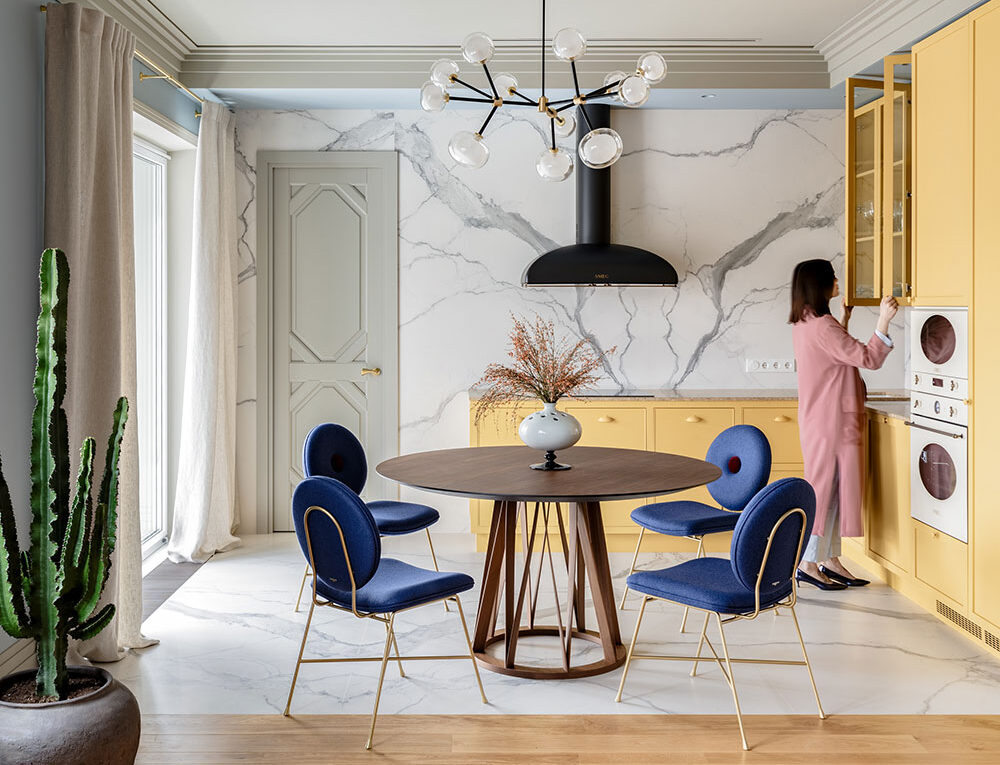 Концепция дизайна этой минской квартиры простая и понятная: хозяева очень любят солнечную погоду и отдых в тёплых странах, особенно средиземноморского региона, поэтому попросили дизайнеров студии Atelier Prototipi оформить интерьер исходя из этих соображений. Самое яркое пятно в доме — это жизнерадостная кухня с желтыми словно солнце шкафчиками. Вместе с синими обеденными стульями, пространство действительно навивает мысли о ясном солнечном дне. В остальных комнатах также хватает ярких акцентов, которые лишь поддерживают общую идею дизайнеров. Смотрим!