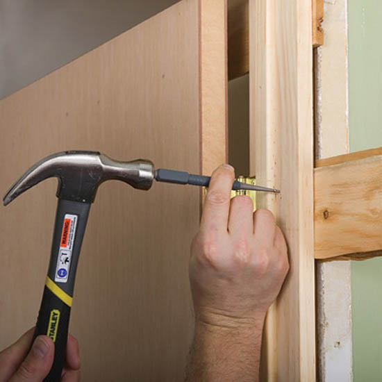 Итак, как установить коробку в проем? В первую очередь следует убрать полотно, которым оснащаются любые межкомнатные двери, чтобы в дальнейшем самому не повредить его. Его установка будет осуществляться позднее. Необходимо проверить ровность каркаса с помощью уровня, а затем вставить коробку в проем, Коробка должна устанавливаться максимально ровно, без уклона, поскольку при наличии перекоса могут возникнуть проблемы с открыванием двери.