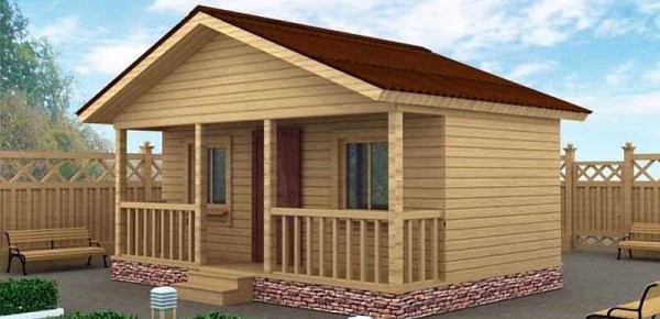 Проект небольшой дачи из бруса с открытой верандой