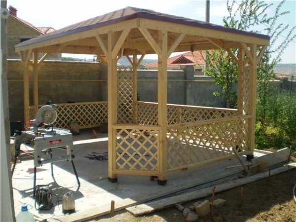 Мы разберем пример постройки каркасной беседки из дерева. Но даже если вы собрались делать его из металла или ПВХ, порядок работы будет тот же. Другой принцип соединения материалов каркаса, а в остальном, все аналогично.