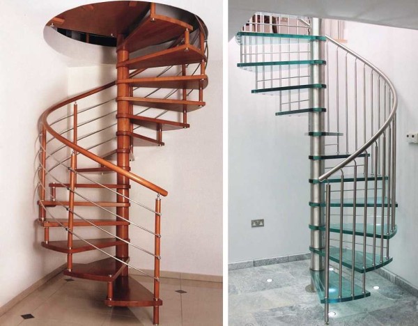 - Винтовые или спиральные. Занимают меньше всего места, хорошо смотрятся, но не очень удобны в эксплуатации. Чаще всего используются как дополнительные.