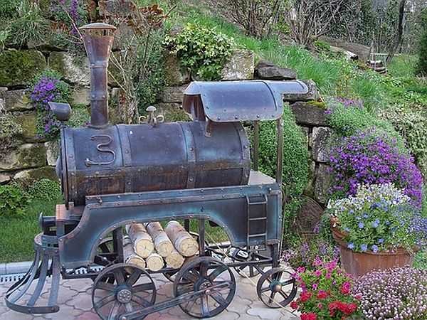 При желании, мангал можно оформить очень привлекательно, например, в виде паровоза