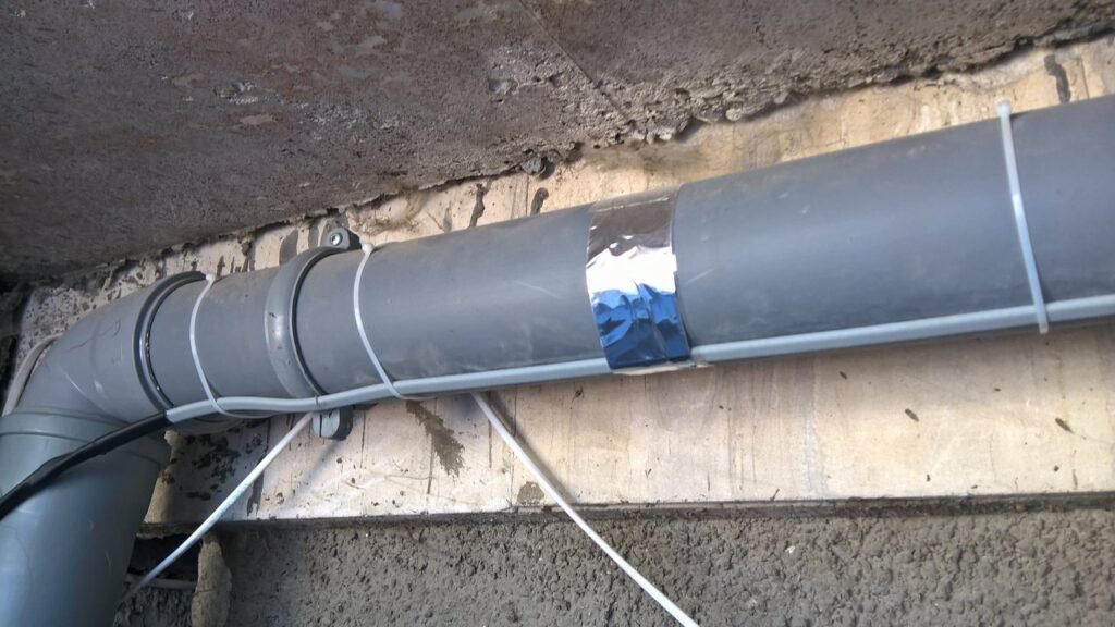 — Разложите кабель по трубам, оставляя достаточно пространства для всех изгибов и соединений. Обычно кабель фиксируется с помощью стяжек или специальной ленты.