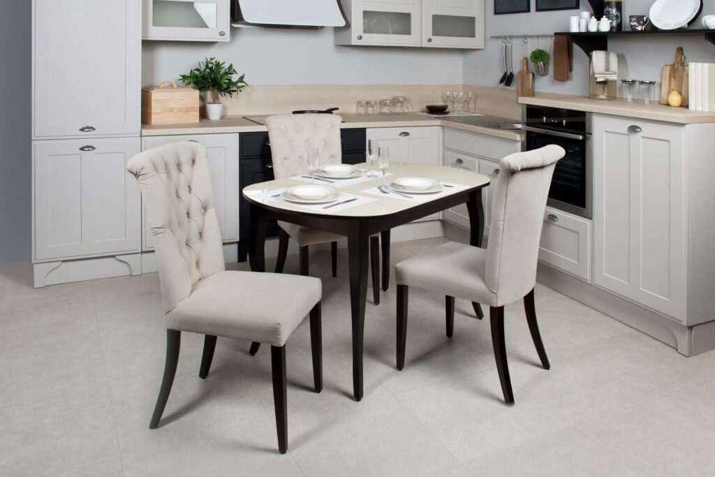Гармоничное сочетание стульев с размерами и формой кухонного стола.