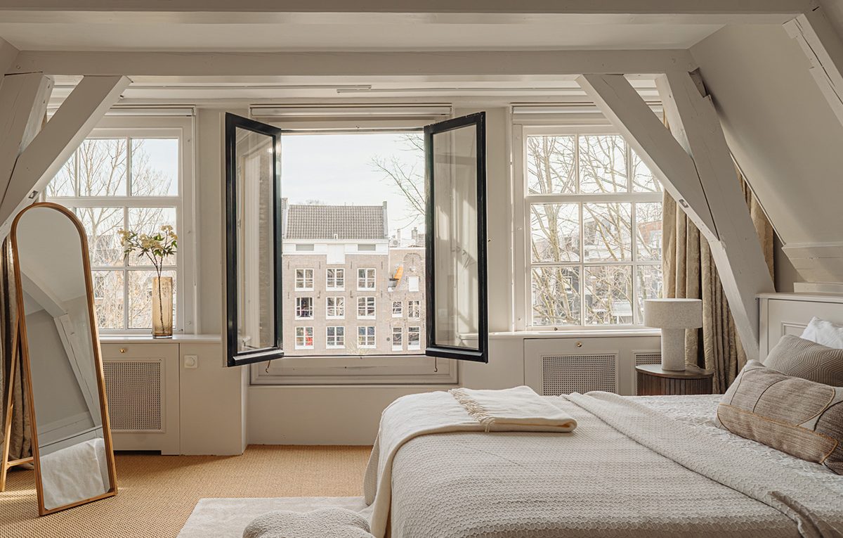 Квартиры в домах на канале в Амстердаме не спутать ни с чем — уникальная архитектуры и особенно виды из окон всегда могут подсказать вам, что этот интерьер находится в историческом центре столицы Нидерландов. Сегодня у нас как раз одна из таких квартир, которая занимает три последних этажа изящного старинного таунхауса 17 века. Дизайнеры выбрали спокойную и мягкую цветовую гамму для оформления интерьеров, в которых преобладает мебель и декор в современному скандинавском стиле. Ну а изюминкой жилья является романтичная спальня на мансардной этаже с огромными окном, через который открываются потрясающие виды!