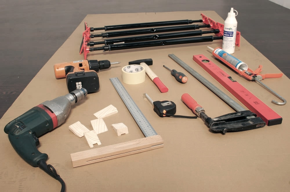 Электродрель. Для того, чтобы предварительно просверлить гнезда для саморезов.