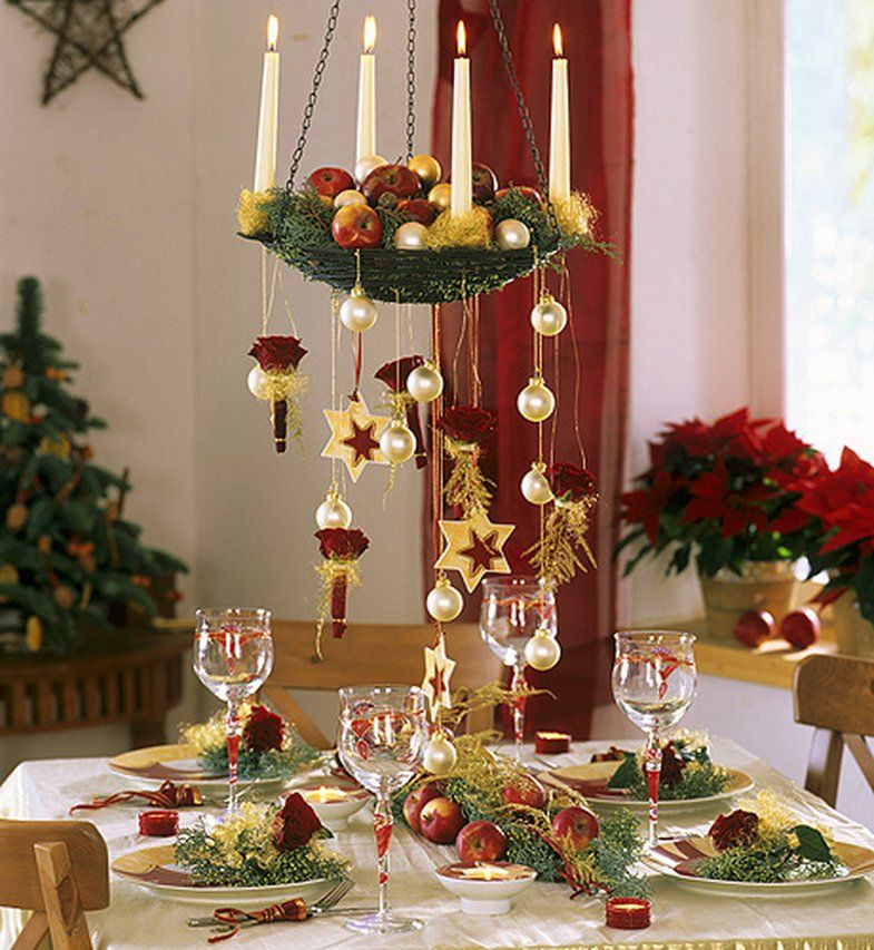 Сервируйте обеденный стол небольшими, но эффектными новогодними композициями из свечей, еловых веток, шишек, ягод.