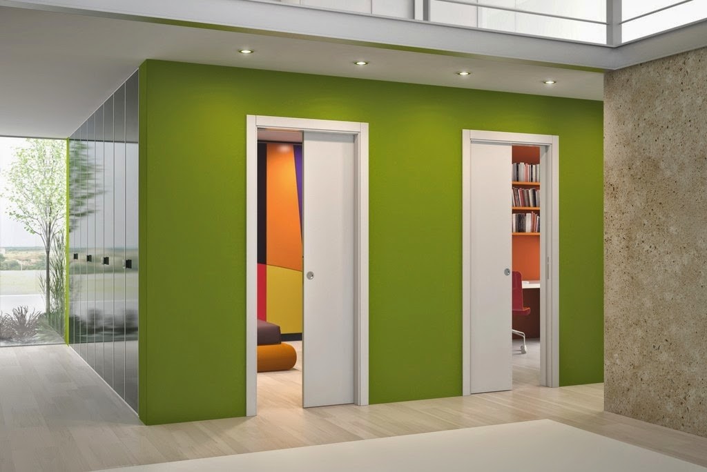 Межкомнатные двери пенал при открывании скрываются внутри стены, то есть не занимают свободное пространство, как стандартные варианты, а также придают интерьеру помещения некоторую элегантность. Дверь пенал лучше всего будет смотреться в гостиной комнате, использовать такой механизм можно в офисе или общественном заведении.