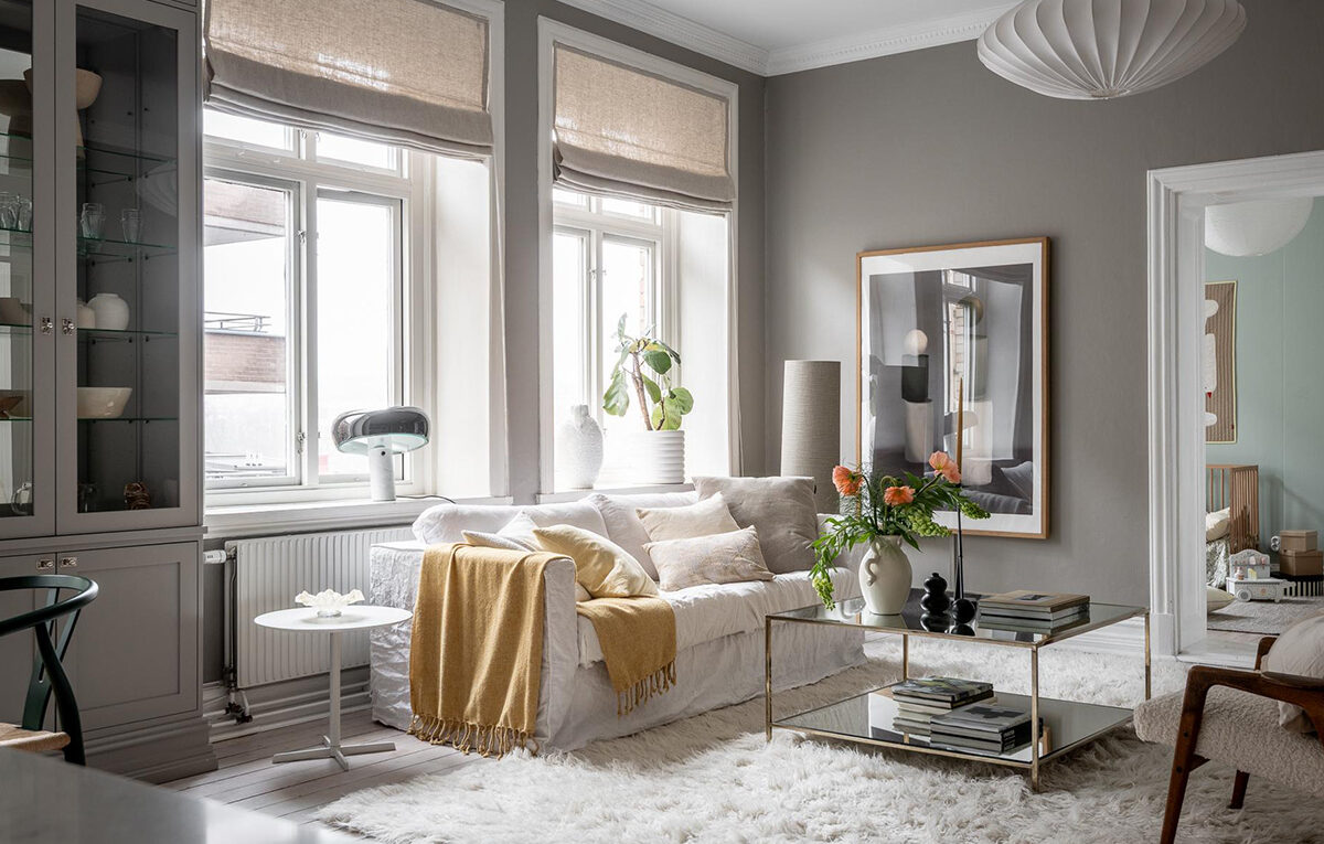 Оттенки серого в дизайне необычной скандинавской квартиры