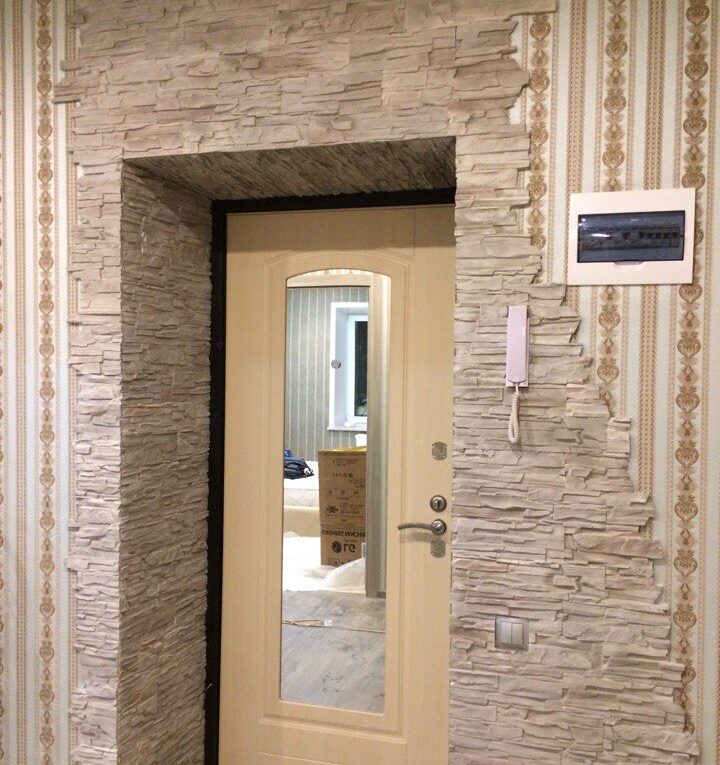 Источник: http://o-dveryah.ru/dizajn/otdelka-vkhodnoy-dekorativnym-kamnem/
