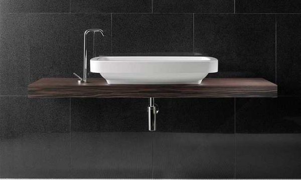 Существую еще раковины с цельнолитой столешницей (называют еще наоборот — столешница с цельнолитой или интегрированной раковиной). Эти сантехнические изделия делают из фарфора, фаянса, искусственного камня. Их устройство полностью исключает протекание воды, так как никаких швов нет — раковина — это только углубление в плоскости, все сделано из монолитного материала. Имеется только отверстие для установки сифона и крана (для крана есть не всегда, так как могут устанавливаться настенные модели).