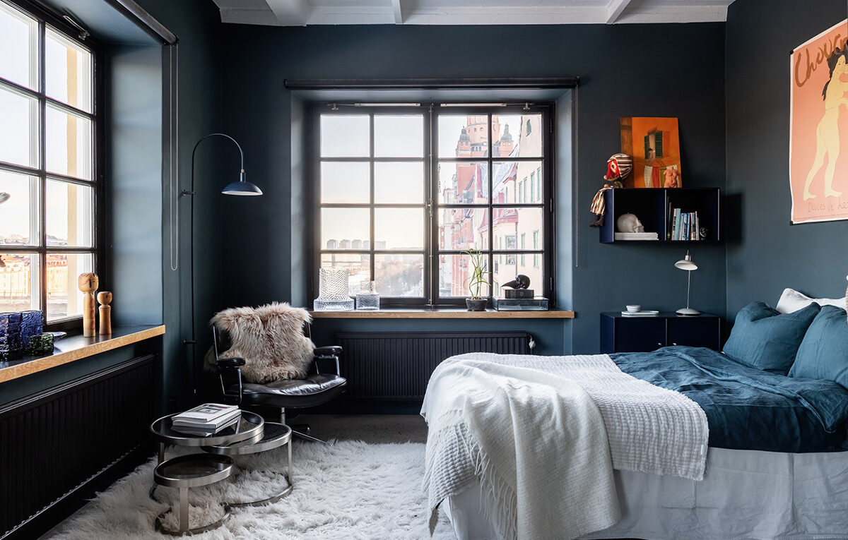 Большие окна, балки на потолках, открытое пространство гостиной — с первой фотографии понятно, что эта квартира в Стокгольме находится в