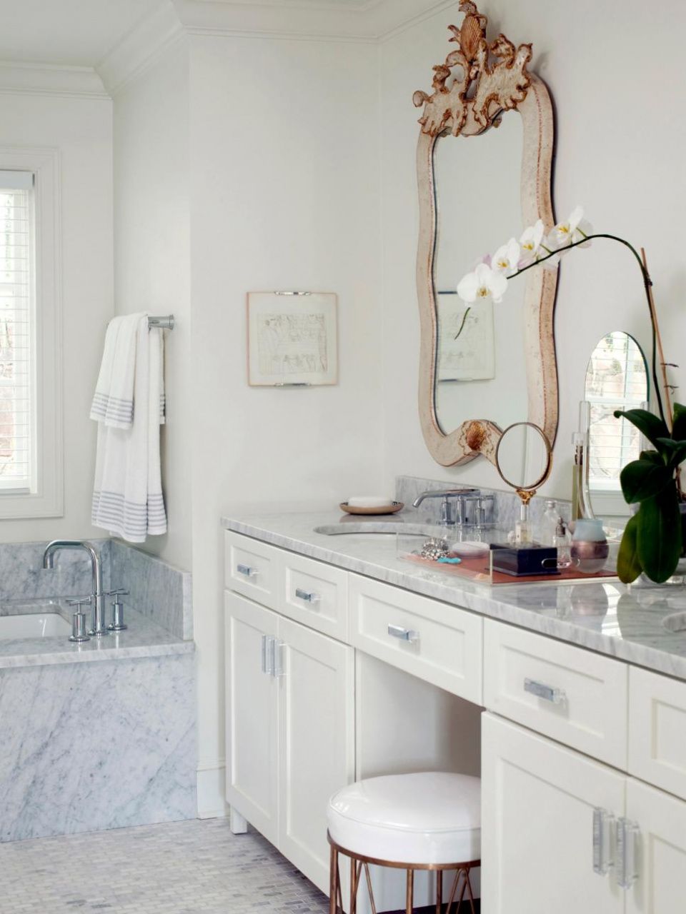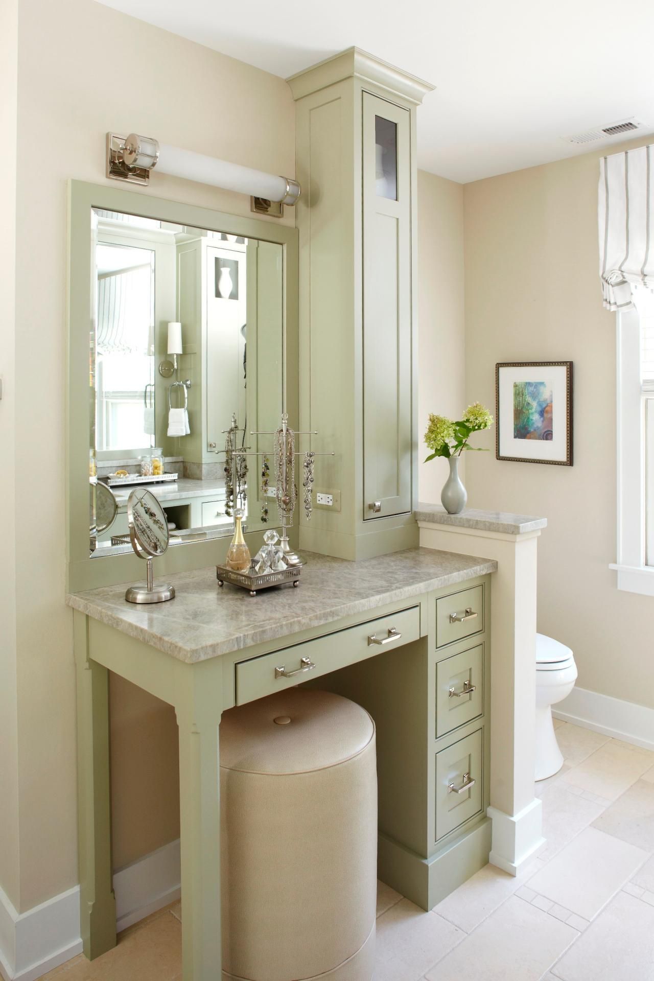 Туалетный столик становится стильным и гармоничным дополнением дизайна ванной.